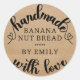 Rustic Handmade with Love Script Heart Baked Goods Kraft paper Classic Round Sticker. Customise your product and name to make the perfect label for your small business needs.