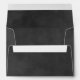 This chalkboard wedding mailing envelope features a textured chalkboard background with the return address printed on the front in white hand-lettered typography, framed by decorative scrollwork corner accents. The chalkboard texture continues inside as a coordinating liner. Personalize with your names and mailing address.