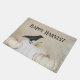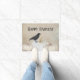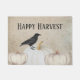 A doormat decorated with pumpkins and a crow. Customize the text with just a few clicks!