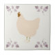 A sweet rustic painted look ceramic tile with a beige chicken in the middle and brownish purple coloured chervil at the corners of the tile, for that farm house home decor style. The background is a light cream colour. If desired, the background can be changed to any colour you like via the design tool (click the "Personalize this design" button).