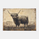 This artwork features a rugged Highland cattle with its signature shaggy coat, set against a rustic countryside backdrop. The earthy tones and textured style evoke a timeless, pastoral charm, perfect for farmhouse decor and nature-inspired art lovers.
