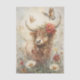Rustic Highland Cow illustration adorned with wildflowers and delicate butterflies, inspired by countryside charm and soft botanical elegance.