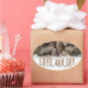 Festive, rustic pine cones accentuate this classic, elegant design wishing holiday Love and Joy.