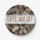 Rustic Holiday Love and Joy Pine Cone Paper Plate