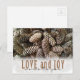 Rustic Holiday Love and Joy Pine Cone Postcard