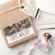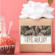 Festive, rustic pine cones accentuate this classic, elegant design wishing holiday Love and Joy.