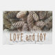 Festive, rustic pine cones accentuate this classic, elegant design wishing holiday Love and Joy.