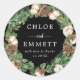 Elegant rustic winter wedding favour seal. The wedding couple's first names are in the centre with a short thank you and date. They are surrounded by a traditional pine and holly wreath. The wreath has a variety of greenery such as pine, spruce and holly. Red berries give it a pop of festive colour. White cotton flowers give in a modern vibe and brown pinecones add a country texture. This wedding thank you sticker is included in the Holly and Pine White Floral collection. Feel free to message me, if you need help finding coordinating items.