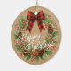 This beautifully designed holiday tree ornament showcases elegant watercolor artwork of a wreath embellished with a red and black buffalo lumberjack chequered bow, pinecones, green holly leaves, red berries, and pine needles. Its classy yet rustic design captures the essence of the December holiday season and appeals to those who appreciate artistic illustrations. The ornament offers customisation options, allowing you to personalise it with your company name, family name, or individual names on the back, and include a tailored seasonal greeting poem, making it a thoughtful choice for spreading holiday cheer.
