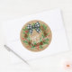Rustic Holly Wreath White Black Chequered Bow Classic Round Sticker