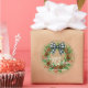 This beautifully designed holiday sticker showcases elegant watercolor artwork of a wreath embellished with a white and black buffalo lumberjack chequered bow, pinecones, green holly leaves, red berries, and pine needles. Its classy yet rustic design captures the essence of the December holiday season and appeals to those who appreciate artistic illustrations. The sticker offers customisation options, allowing you to personalise it with your company name, family name, or individual names, and include a tailored seasonal greeting, making it a thoughtful choice for spreading holiday cheer.