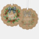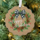 This beautifully designed holiday ornament card showcases elegant watercolor artwork of a wreath embellished with a white and black buffalo lumberjack chequered bow, pinecones, green holly leaves, red berries, and pine needles. Its classy yet rustic design captures the essence of the December holiday season and appeals to those who appreciate artistic illustrations. The card offers customisation options, allowing you to personalise it with your company name, family name, or individual names, and include a tailored seasonal greeting poem on the back, making it a thoughtful choice for spreading holiday cheer.