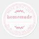 Rustic homemade baked goods or jam canning sticker with the text homemade, made with love and your name in hot pink modern typography on a white background. Simply add your name to the label. You can write the product names on the stickers when the products are made. Exclusively designed for you by Happy Dolphin Studio. If you need any help or matching products, please contact us at happydolphinstudio@outlook.com.
