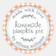 Rustic Homemade Pumpkin Pie Orange Check Classic Round Sticker