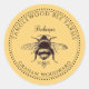 A simple rustic sketched bee design product labels, in the round, on a yellow gold background, paired with an elegant vintage typography. For an earthy simple rustic organic style. Simply type in your own business name and your name.