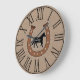 Rustic Horseshoe and Black Horse Faux Burlap Large Clock