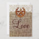 This rustic country western wedding invitation has a rustic horseshoe with a star in the middle over the top of a printed lace design. The background is a printed burlap design. The back of the invitation has the same rustic country style horseshoe cowboy design and lace with the word "Love" in script. You could change this wording to personalise it with the bride and groom's names if you wanted to. These country theme wedding invitations are perfect for cowboy weddings, country weddings, or any rustic wedding. Please note that the burlap and the lace are just printed design, it is not actual burlap fabric. It is a flat printed invitation. But it gives you the beautiful look of an elegant layered invitation at a fraction of the price. Discount prices when you order 50+ invitations.