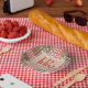 This rustic style design features a wood background with red and white ribbon. On top of that is a burlap texture with red and black serif and handwritten script font which is all customisable to your event, whether an engagement party or couples showers. Celebrate in style with this plate design!
