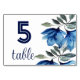 Rustic Indigo Blue Floral Watercolor Modern Table Number