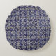 Rustic Italian Tiles Azulejo Blue White Geometric Round Cushion