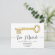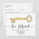 Let your friends and family know your new address with this rustic announcement postcard. This template features a vintage gold key on a white background. Fully customisable text, very simple to edit with your personal details.