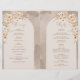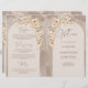 The combination of boho arch watercolor floral elements, typography, hand lettering, and minimalist modern design in a folded ceremony program creates an elegant and stylish aesthetic. The calligraphic script adds a touch of whimsical charm, while the wildflowers in ivory, beige, tan hues, and rustic blush tones give a bohemian and rustic feel. This blend of elements captures a sense of natural beauty and sophistication, making it a perfect choice for a whimsical and elegant wedding ceremony.