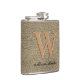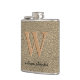 Rustic khaki leather black gold chic monogram custom script name Flask, for additional changes (change photo effect, you can customise further ( by clicking on the customise further button). or contact me at