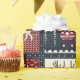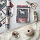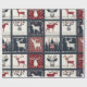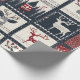 This wrapping paper showcases a knitted patchwork pattern with woodland charm, featuring stylised deer, pine trees, and rustic motifs arranged in a block grid. Rendered in a festive palette of cream, dark blue, and red, it highlights the cosy look of woven stitches and traditional winter craftsmanship. Perfect for lovers of rustic farmhouse style, Nordic holiday designs, and vintage-inspired Christmas décor. A warm and timeless design that brings the spirit of winter forests into the festive season.