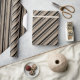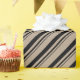 A rustic kraft coloured holiday wrapping paper featuring black coloured candy cane stripes.