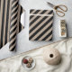 A rustic kraft coloured holiday wrapping paper featuring black wide stripes.