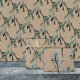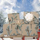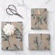 A Kraft holiday wrapping paper featuring watercolour-painted winter greenery of blue juniper tree branches in three different graphics.