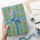 Rustic Kraft Bright Green Blue Stars Wrapping Paper