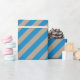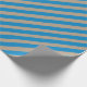 A rustic kraft coloured holiday wrapping paper featuring capri blue wide stripes on the diagonal.