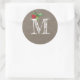 Rustic Kraft Christmas Holly Monogram Initial Classic Round Sticker
