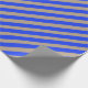 A rustic kraft coloured holiday wrapping paper featuring bright cobalt blue wide stripes on the diagonal.
