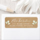 An elegant rose leaf design featuring a script name and return address label with your name in a script font above your address details in classic text on a rustic kraft background. Designed by Thisisnotme©