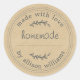 The Rustic Kraft Homemade Label is a round sticker featuring a warm kraft paper background with soft black lettering and sweet botanical accents. Designed for homemade and handcrafted goods, this label is perfect for baked treats, jam jars, candles, canned items, and small-batch gifts. The “made with love” message and customisable name line add a heartfelt, personal touch to your packaging.