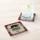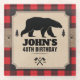 A background of red buffalo plaid contrasts against a kraft paper look panel held on by a burlap strap on this Northwoods themed coaster. The panel holds the text and features a bear between two pine trees. The crossed axe makes a custom logo below. Add your own message to mark a special occasion such as a birthday, bachelor party, seasonal event, or a buffalo plaid, or lumberjack themed celebration. Available with matching products.