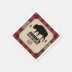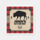 A background of red buffalo plaid contrasts against a kraft paper look panel on this Northwoods themed napkin. The panel holds the text and features a bison (buffalo) between two pine trees. The crossed axe makes a custom logo below. Great addition to a birthday, bachelor party, seasonal event, or a buffalo plaid, or lumberjack themed celebration. Available with matching products.