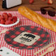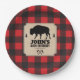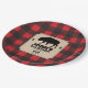 A background of red buffalo plaid contrasts against a kraft paper look panel on this Northwoods themed plate. The panel holds the text and features a bison (buffalo) between two pine trees. The crossed axe makes a custom logo below. Great addition to a birthday, bachelor party, seasonal event, or a buffalo plaid, or lumberjack themed celebration. Available with matching products.