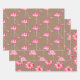 Rustic Kraft Pink Flamingoes & Pink Hibiscus Wrapping Paper Sheet