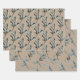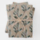 A Kraft Christmas holiday wrapping paper sheet trio set featuring watercolour-painted spruce trees in a repeat pattern.