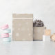 Custom-designed Christmas wrapping paper featuring snowflake pattern on rustic brown and gold kraft paper.