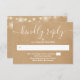 A simple elegant signature script RSVP card with your details set in chic typography on a rustic kraft background, string lights and mason jars on the reverse. Designed by Thisisnotme©