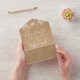 All in one wedding invitation with pretty string lights, signature style names and chic typography on a rustic kraft background. The invitation includes a perforated RSVP card featuring a QR code. Designed by Thisisnotme©