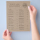 A simple custom logo business takeout menu flyer template in a modern minimalist style on a rustic kraft effect background. This versatile template allows you to easily design a custom takeaway menu for your restaurant, cafe or other catering business. You can include information about your menu items (including a further descripion such as ingredients), opening hours, delivery, payment, allergens etc ... the possibilities are endless! Need help? Feel free to contact me using the message button. I am happy to help with your personalization, additional items or custom orders.