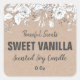 A rustic kraft label with a white flower arrangement for your homemade sweet vanilla scented candles and soy wax melts.