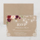Kraft Rustic Wedding String Lights Mason Jars Lace Watercolor Burgundy Marsala Floral RSVP Card