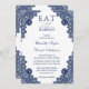 Rustic Lace Navy Blue Eat Drink and Be Married Invitation