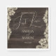 Rustic Lace Nothing Fancy Just Love Wedding Paper Napkins. Celebrate your special day with these charming rustic lace "Nothing Fancy Just Love" wedding paper napkins. The elegant classic cream-colored lace gracefully adorns a dark rustic wood-textured background, creating a warm and romantic ambiance for your reception. Personalize them with your names and wedding date to add a unique and heartfelt touch to your celebration. These napkins are perfect for adding a sophisticated or vintage, yet down-to-earth feel to your wedding décor, making every moment memorable.